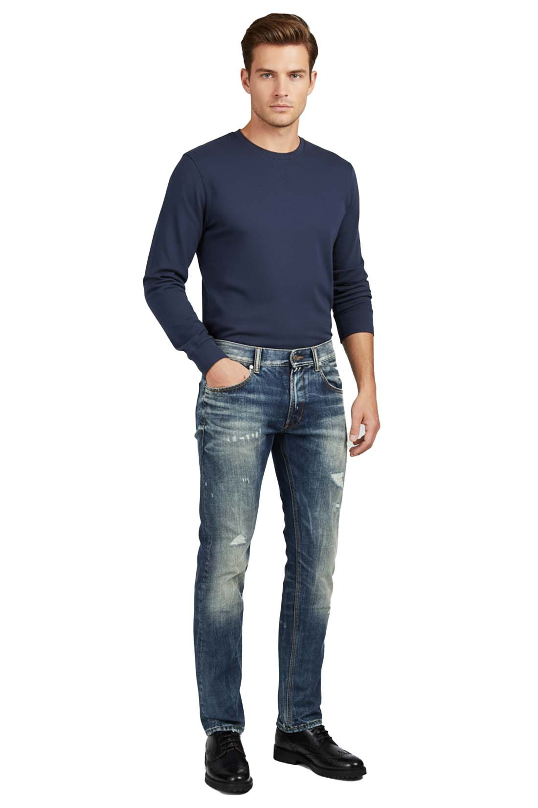 Мужские джинсы Dondup, прямого кроя, сшили из плотного хлопка, окрасили в готовом виде и подвергли обработке. Добавили потёртости, а фирменный патч, пришили изнутри. Описание: Мужские джинсы Dondup Прямой крой Пуговицы застёжки на ширинке Пять карманов Потёртости Состав материала: 100% хлопок Сделано в Италии
