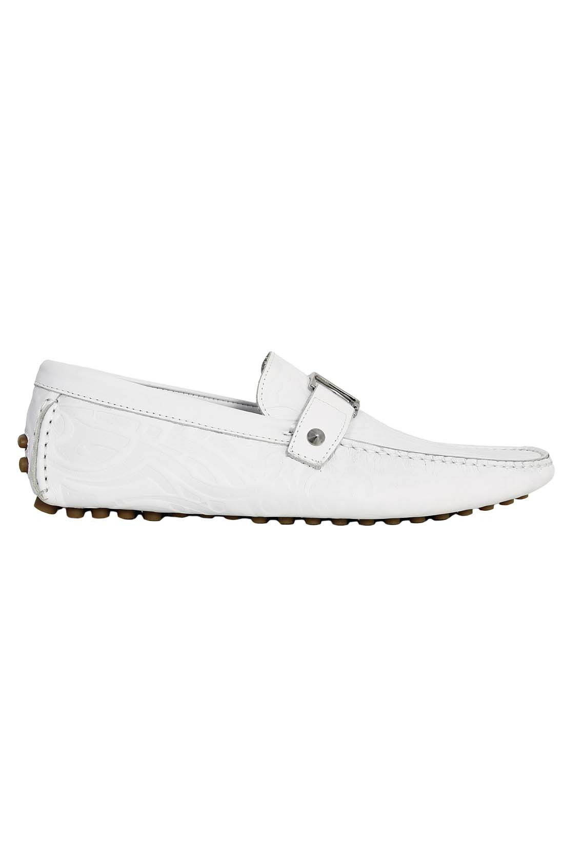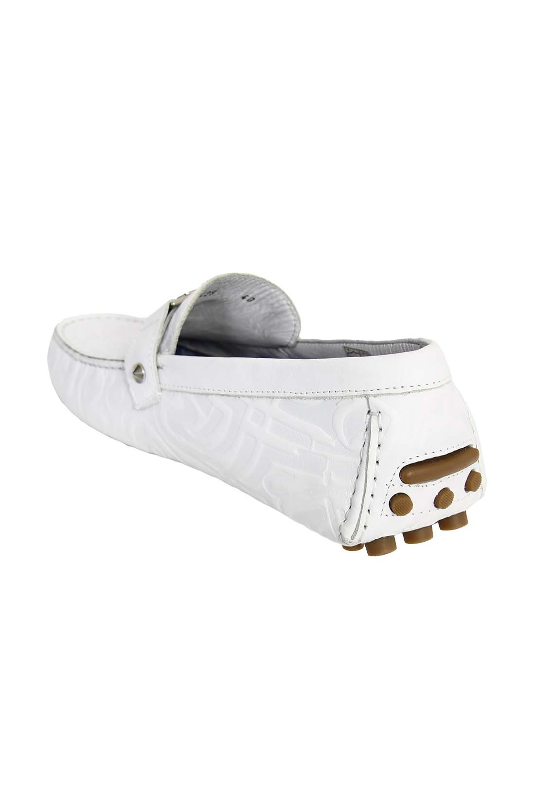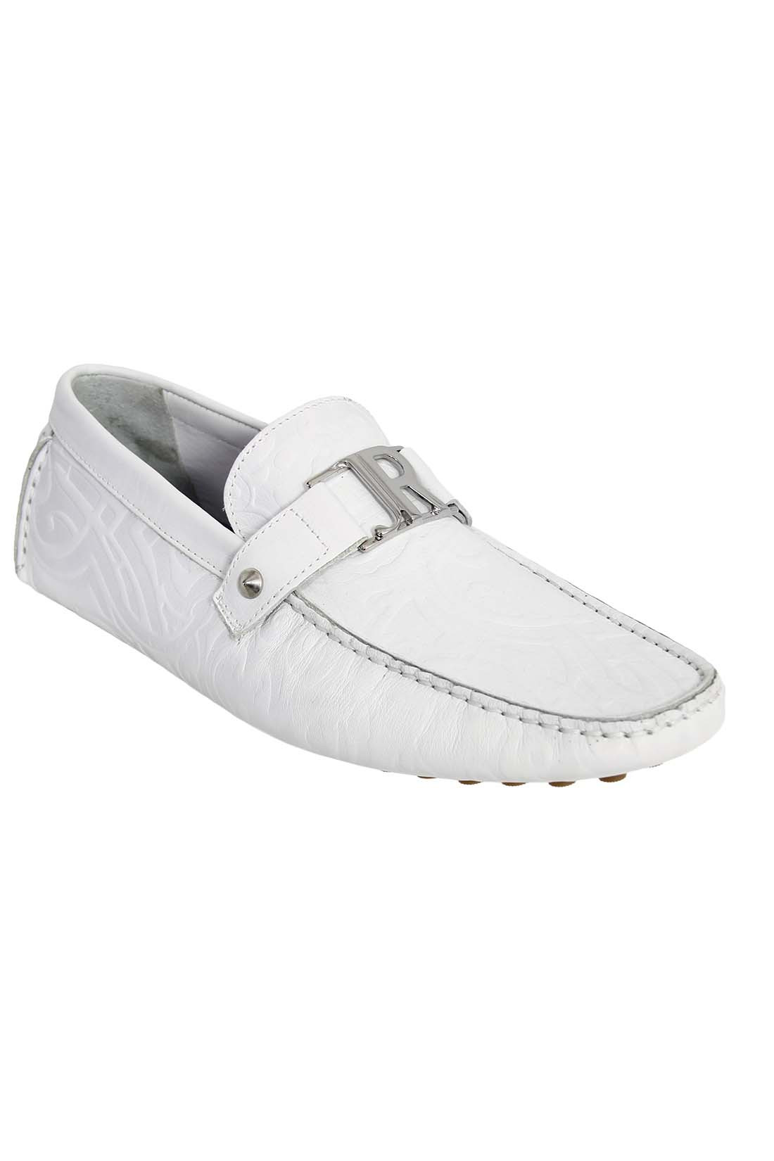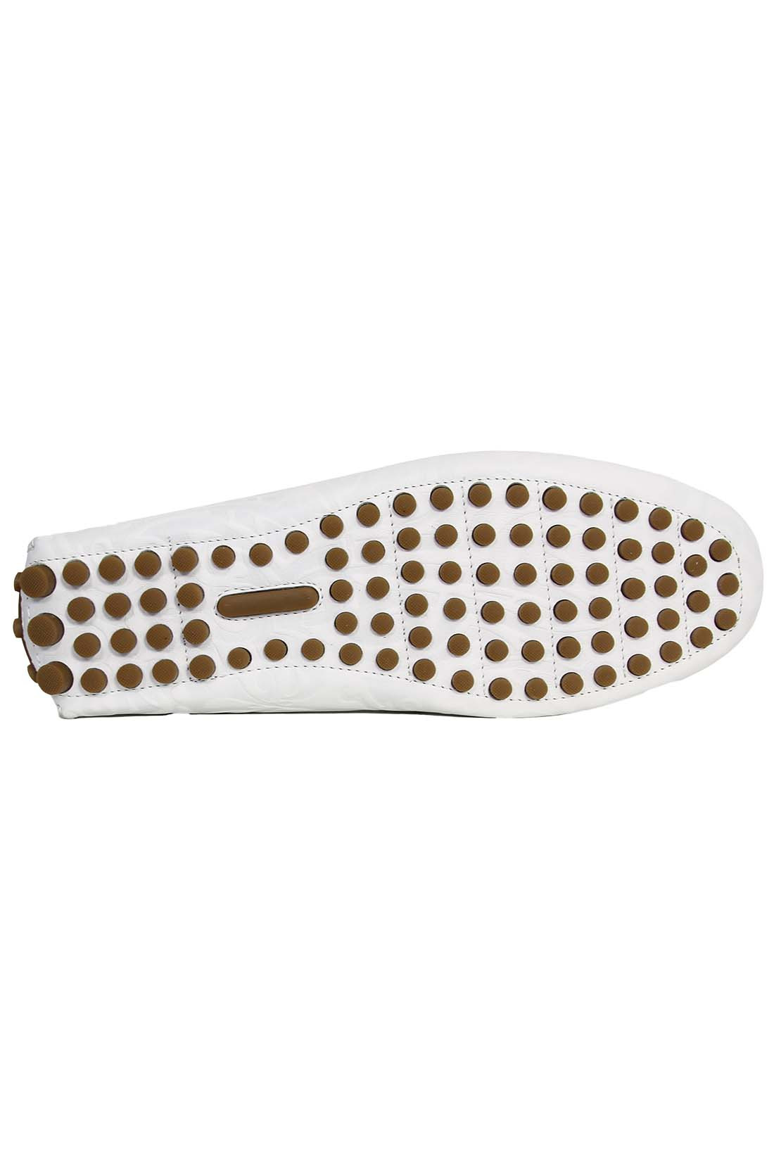 Чтобы изготовить кожаные мокасины John Richmond использовал тонкую кожу с выдавленным логотипом. Гибкая подошва изготовленная и цельного куска кожи и вставленными шипами, обеспечивает максимальное удобство при ходьбе и защищает от скольжения на гладкой поверхности, а стопа максимально дышит. На союзке, широкая перемычка с металлическим логотипом брэнда. Описание: Кожаные мокасины John Richmond 100% кожа Сделано в Италии
