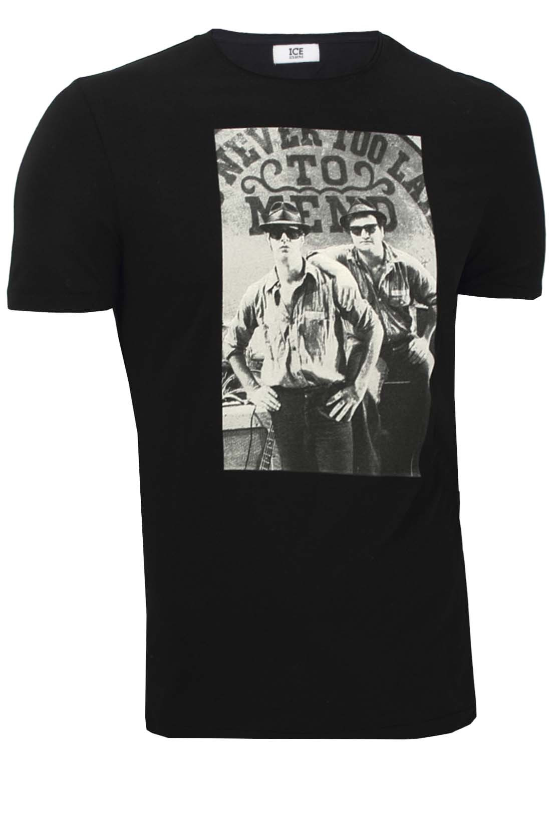 Черная футболка Iceberg имеет круглый вырез и короткий рукав. Она облегает силуэт и сделана из хлопка с добавлением эластана для комфорта и эластичности. На футболке есть принт с изображением Братьев Блюз - знаменитых персонажей из одноименного фильма. Эта футболка станет стильным и удобным выбором для повседневного образа. Детали: Чёрная футболка "Братья Блюз" Iceberg Круглый вырез Облегающий силуэт Принт спереди Состав материала: 98% хлопок, 2% эластан