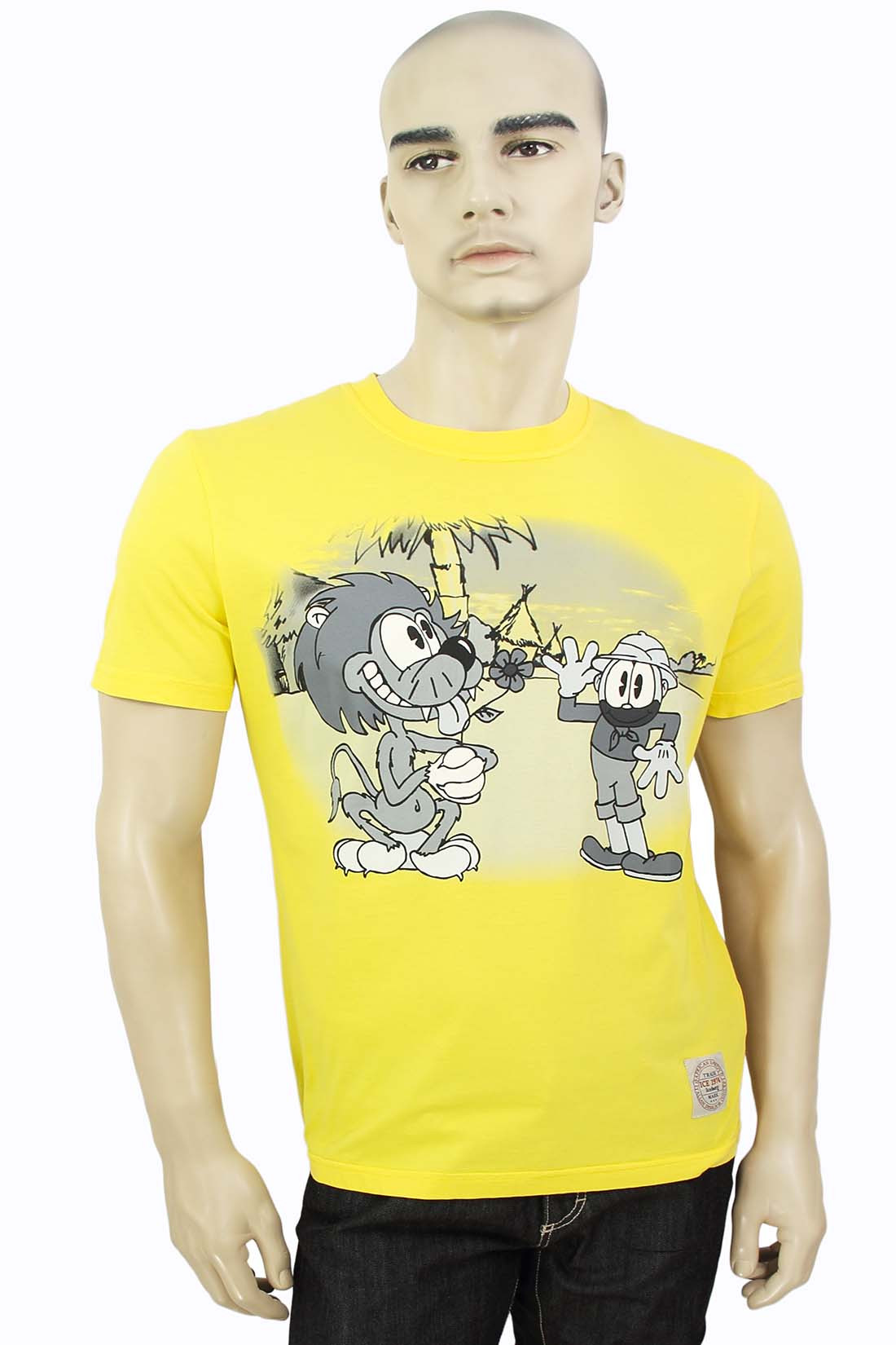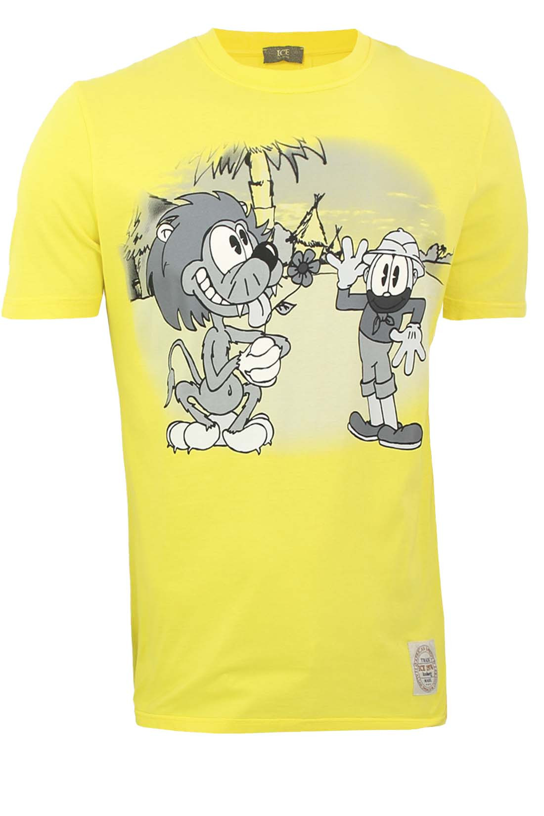 Жёлтая, мужская футболка, с мультяшными героями из коллекции Iceberg, будет вас выделять и радовать. Мастера бренда, для создания, использовали, мягкий хлопок, который позволяет дышать телу, а прямой крой не сковывает движений Описание: Жёлтая футболка с принтом Iceberg Принт на груди Фирменная нашивка внизу Свободный крой Состав материала: 100% хлопок делано в Италии