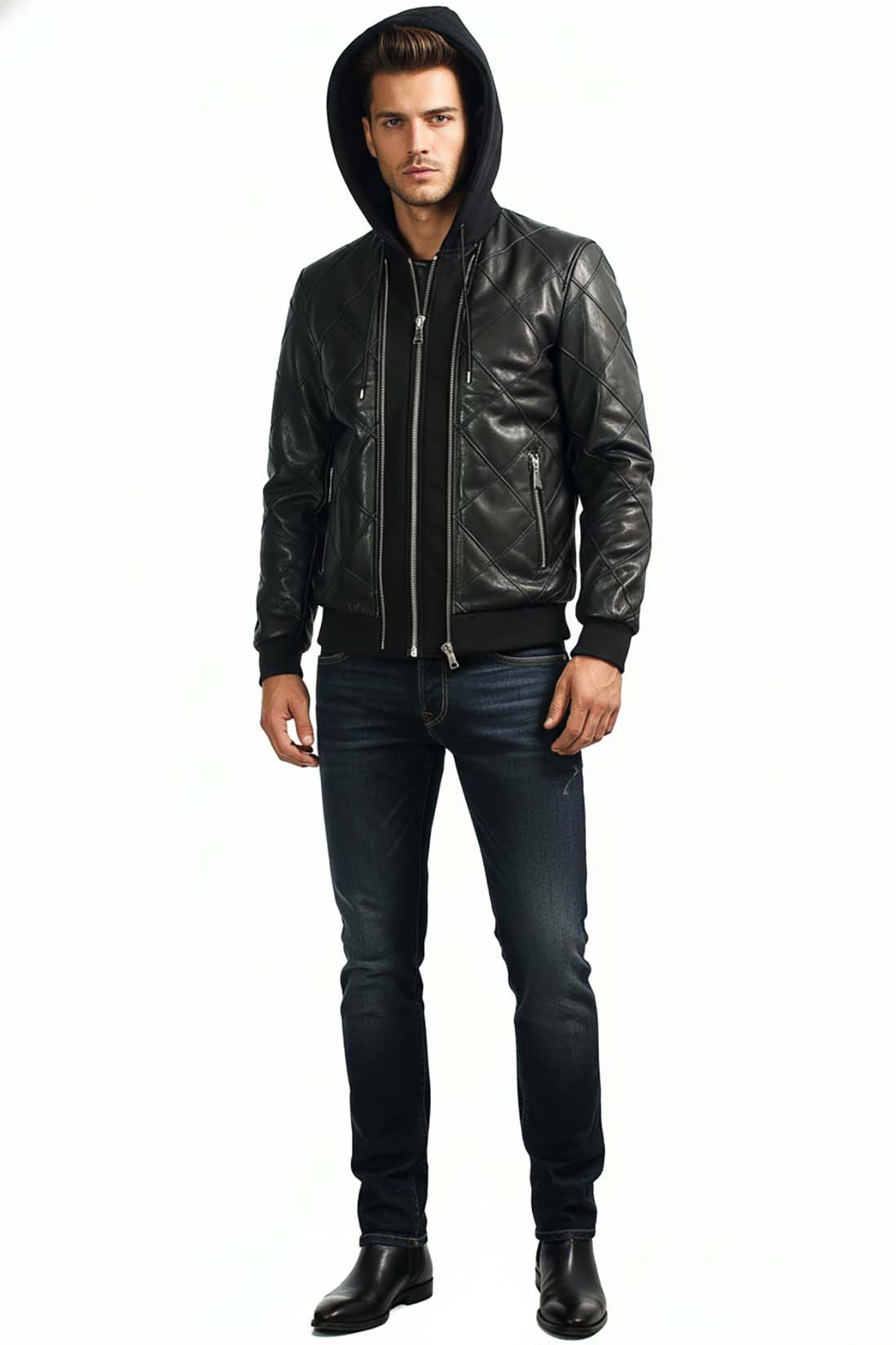 Кожаный бомбер Yes London из зимней коллекции, выполнен из мягкой кожи, стёганая, утеплённая тонким слоем синтепона, комбинированная трикотажными вставками. Большой трикотажный капюшон с затяжками, и трикотажный стойка воротник, надёжно защитит от плохой погоды. Описание: Кожаная куртка Yes London Утеплённая, с подкладкой Модель бомбер Трикотажный стойка воротник Не съёмный капюшон Два кармана на молнии Внутренний карман на молнии Состав: Верх - 100% кожа Подкладка - 90% хлопок, 10% эластан Капюшон и вставки из полиамида Сделано в Италии