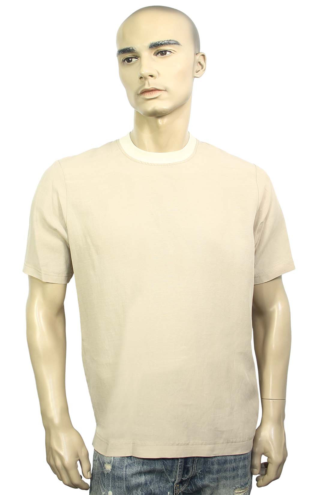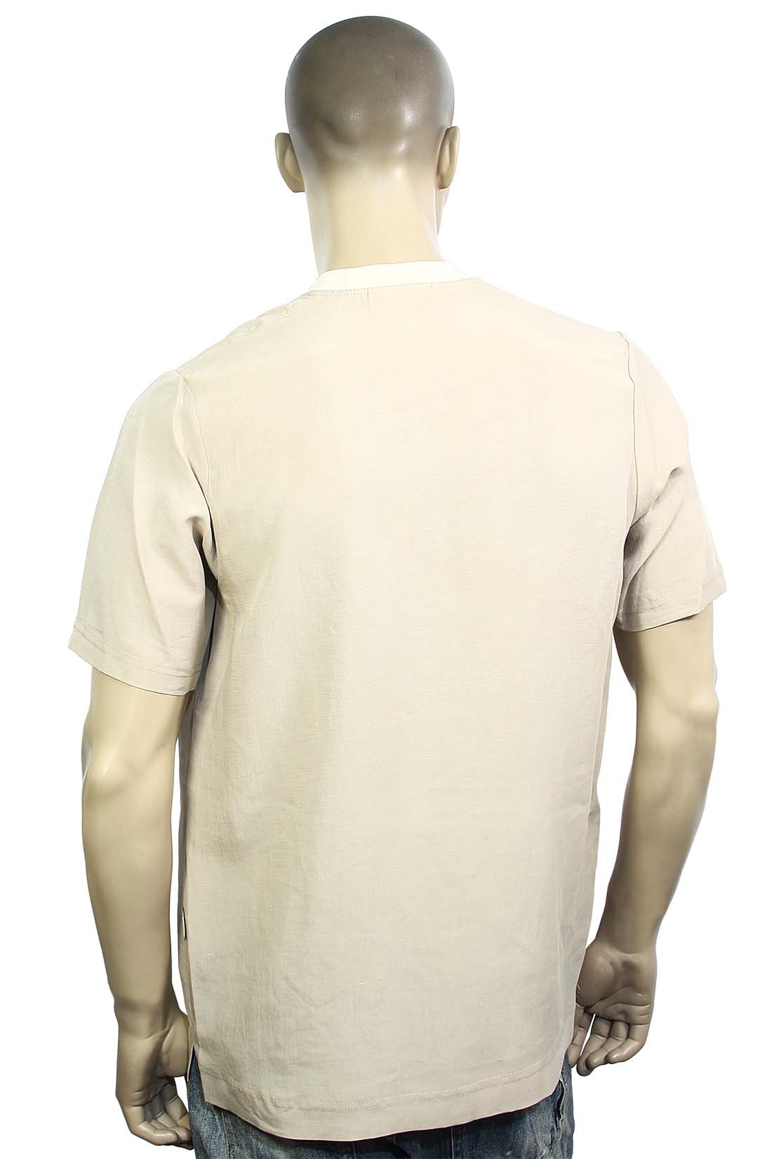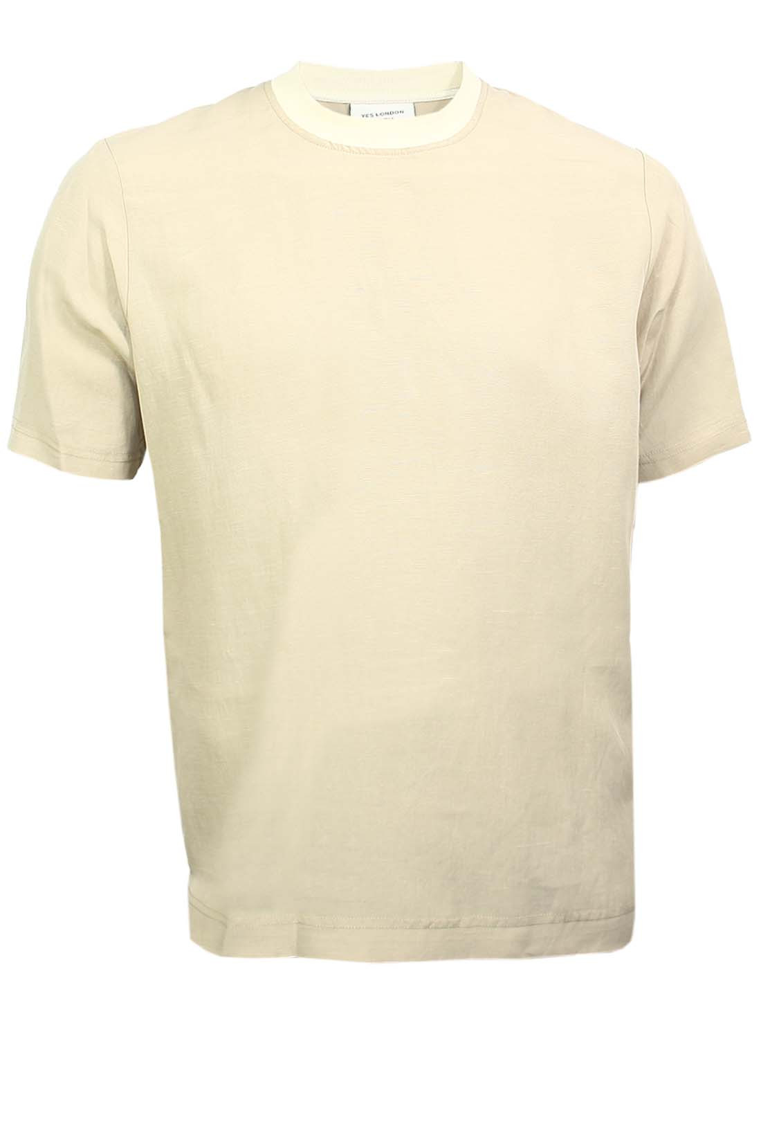 Мужская бежевая футболка Yes London. Использование лиоцелла с добавлением льна не только делает ткань легкой и дышащей, но и придаёт ей приятную текстуру. Свободный крой позволяет обеспечить свободу движений и комфорт в течение всего дня. Короткий рукав делает эту модель идеальной для тёплой погоды и повседневного ношения. Такая футболка отлично будет сочетаться как с джинсами, так и с шортами, создавая стильный и расслабленный образ. Детали: Мужская бежевая футболка Yes London. Свободны крой. Круглый вырез горловины. Короткий рукав. Состав материала: 75% лиоцелл, 25% хлопок. Сделано в Италии.
