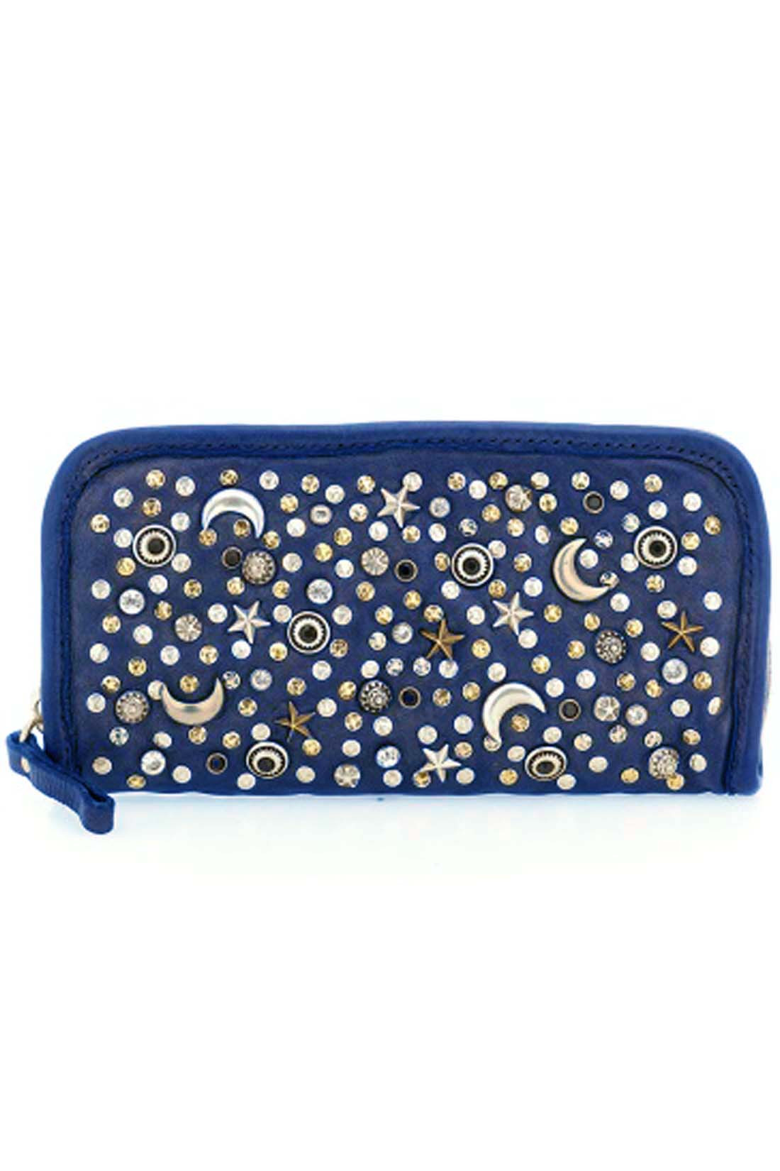 Синий кожаный клатч с заклёпками Campomaggi