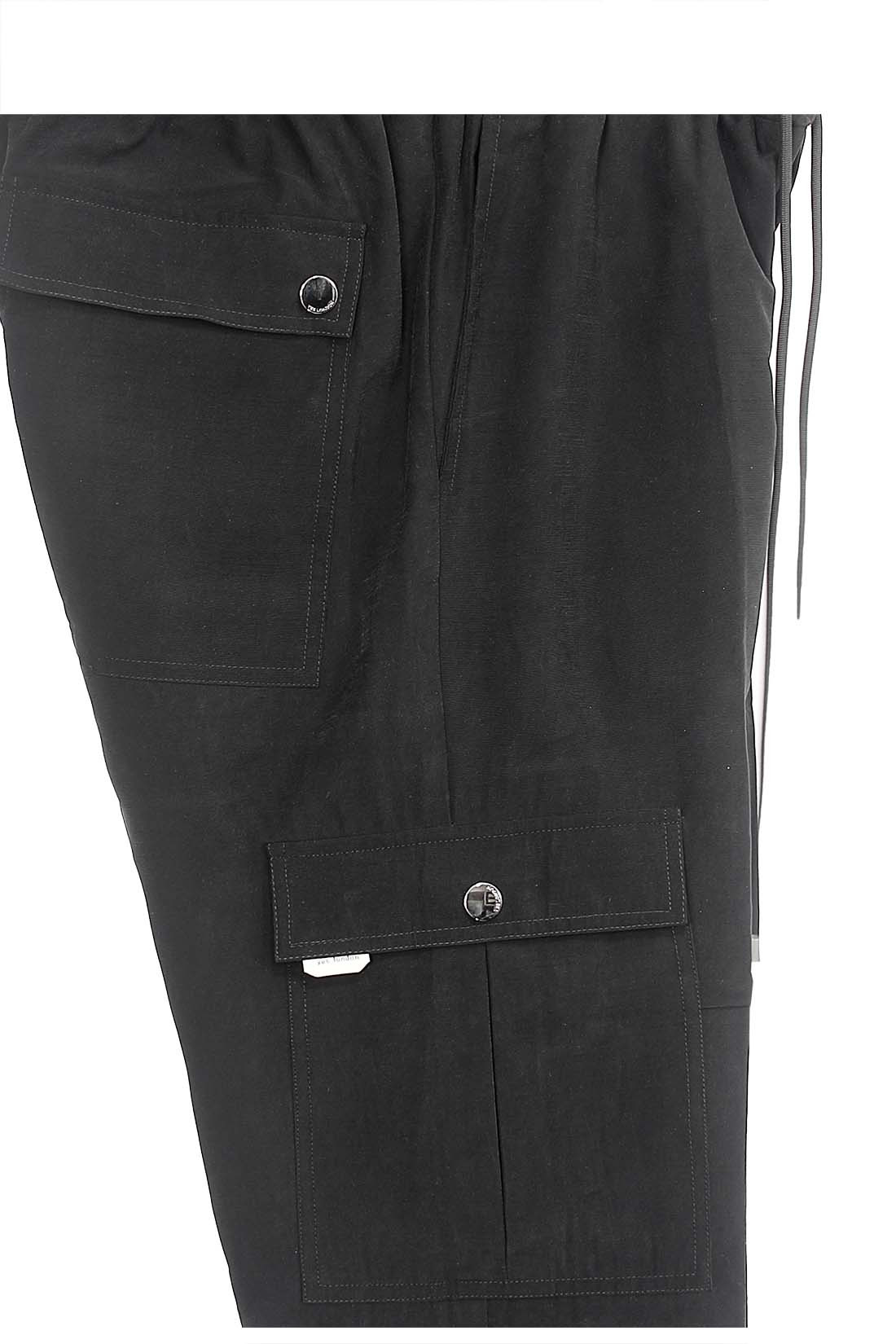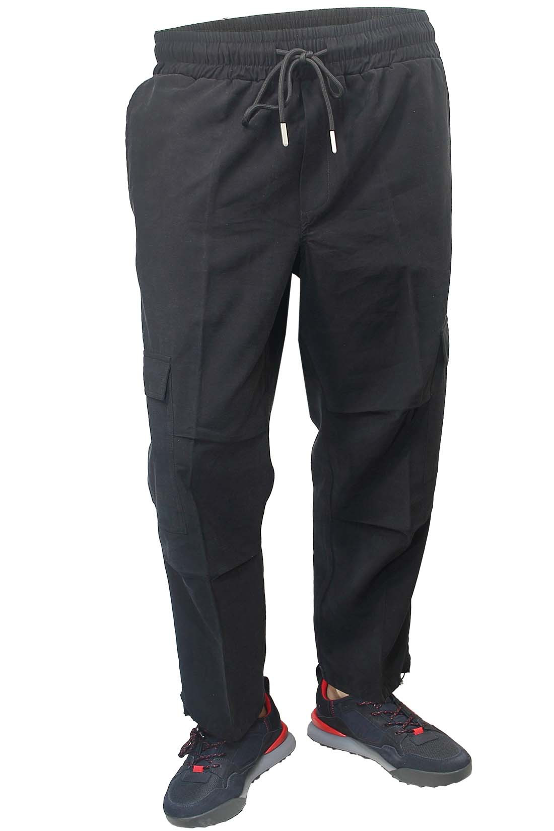 Джоггеры из коллекции Yes London выполнены из лёгкой ткани на основе вискозы с добавлением полиэстера. Модель прямого широкого кроя дополнена эластичным поясом со шнурком-кулисой для комфортной посадки. Внизу брючин предусмотрена кулиса, позволяющая варьировать силуэт. Изделие оснащено двумя боковыми карманами, карманами с клапанами на кнопке по бокам и сзади — отсылка к классическим брюкам-карго. Минималистичный дизайн сочетается с функциональностью, формируя современный повседневный образ. Детали: Широкие джоггеры-карго Yes London. Прямой широкий крой. Эластичная линия пояса. Шнурок кулиса. Два боковых кармана. Два дополнительных кармана с клапаном и кнопкой застёжкой. Один задний карман с клапаном и кнопкой застёжкой. Внизу брючин кулиса. Состав материала: 90% район, 10% полиэстер. Производство: Италия.