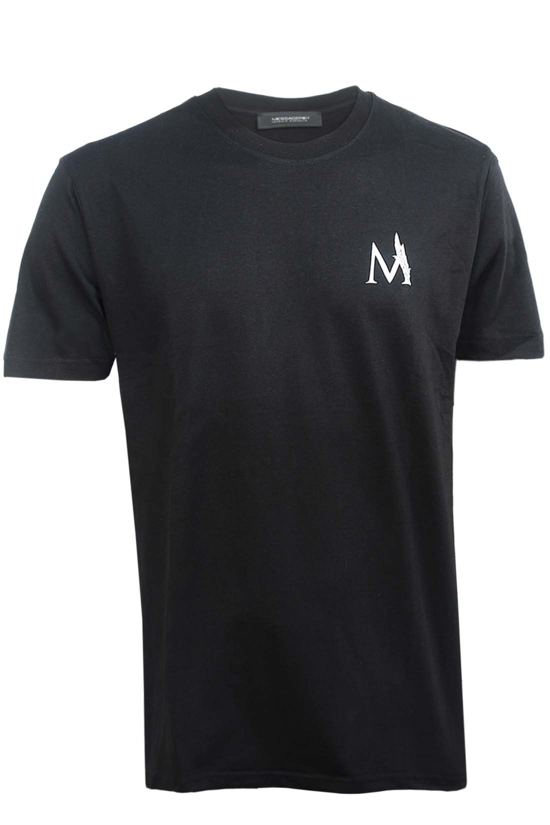Чёрная однотонная футболка Messagerie. Прямой крой. Круглый вырез горловины. Короткий рукав. На груди фирменный логотип. Состав материала: 100% хлопок. Сделано в Италии.