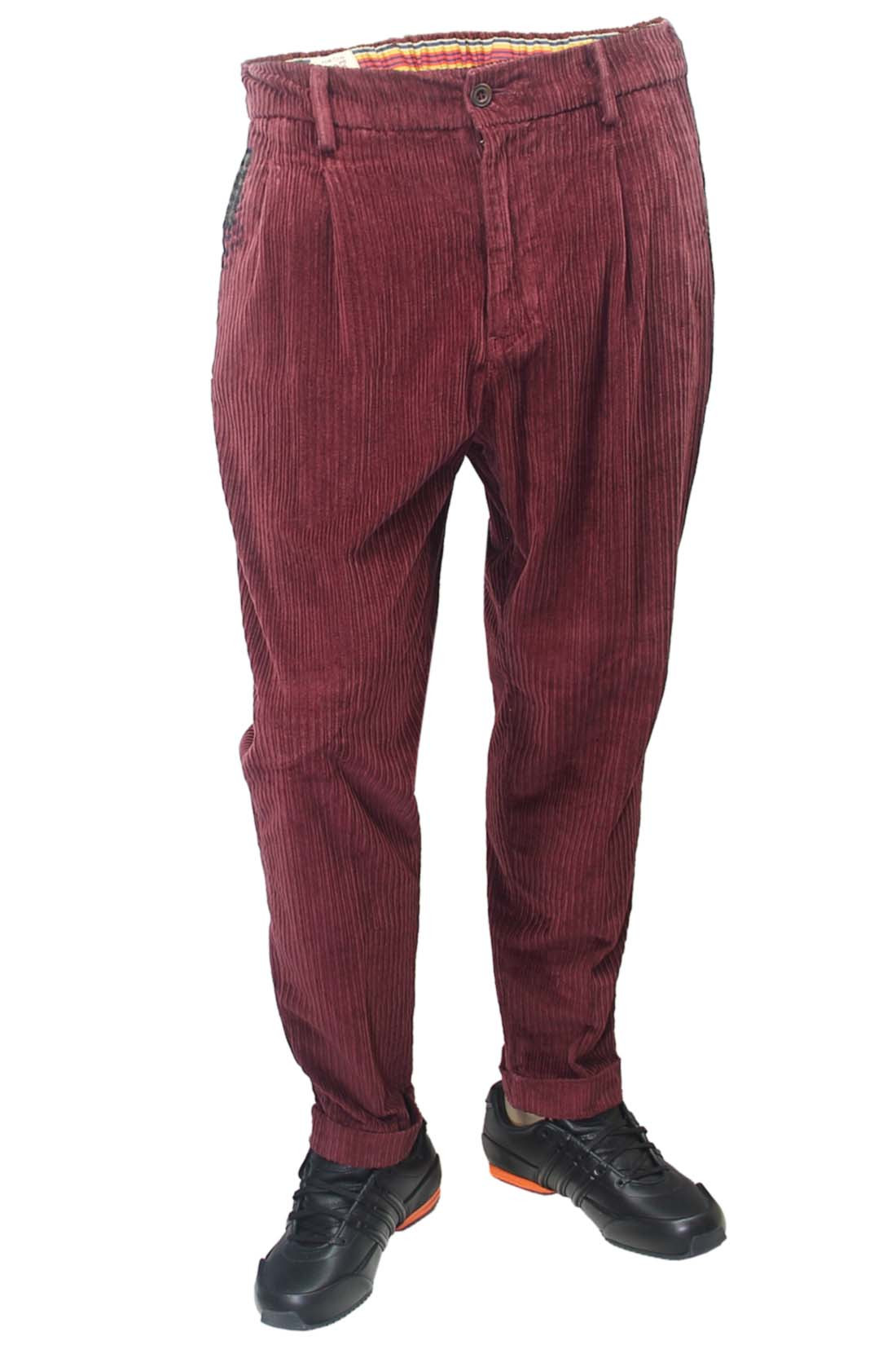 Выполненные из мягкого хлопка с добавлением эластана, бордовые брюки Bob отличаются комфортной посадкой и сдержанной элегантностью. Модель прямого кроя подчеркнута эластичной линией пояса с регулируемой кулисой, что обеспечивает оптимальную посадку и свободу движения. Два боковых и два задних кармана сохраняют функциональность образа, а манжеты по низу брючин придают силуэтe современное, расслабленное звучание. Идеальный выбор для повседневного гардероба в стиле smart casual. Описание: Бордовые вельветовые брюки Bob. Прямой крой. Эластичная линия пояса, плюс кулиса. Два боковых кармана. Два задних кармана. Внизу брючин манжеты. Состав материала: 98% хлопок, 2% эластана. Сделано в Италии.
