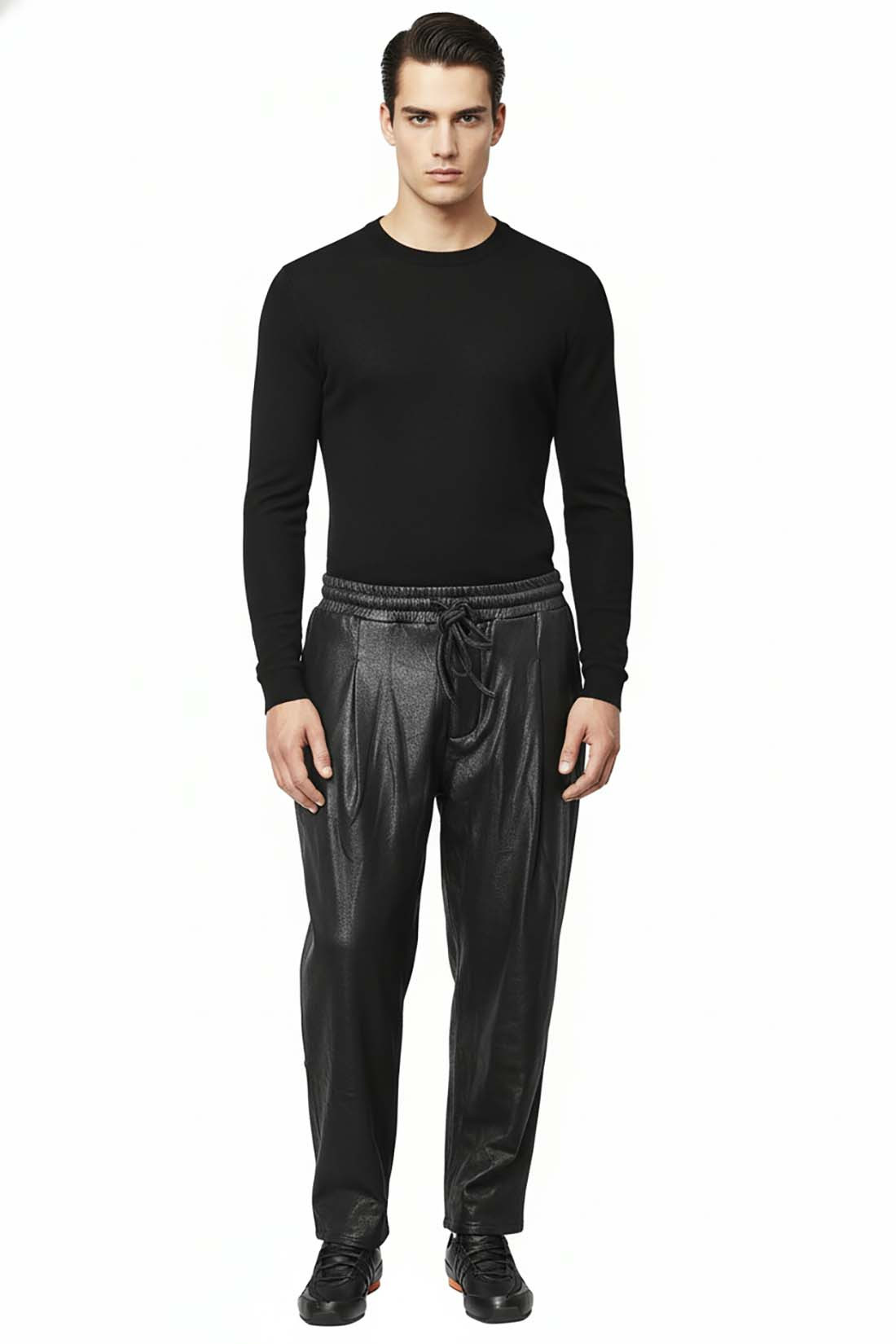 Дизайнеры Never Enough представляют интерпретацию повседневной классики, выполненную из уникального современного материала с выразительной текстурой и безупречной посадкой. Глубокий чёрный оттенок подчёркивает графичность силуэта и делает модель универсальной для гардероба в стиле smart casual. Широкий крой создаёт свободную, уверенную линию, а эластичная линия пояса с кулисой обеспечивает комфорт и индивидуальную регулировку. Функциональность поддерживают два боковых и два задних кармана, сохраняющие чистоту дизайна. Завершает модель аккуратная ширинка на пуговицах — деталь, отсылающая к традиционному портновскому исполнению. Детали: Чёрные брюки Never Enough. Широкий крой. Эластичная линия пояса с кулисой. Два боковых кармана. Два задних кармана. Ширинка на пуговицах. Состав материала: 94% полиэстер, 6% эластан. Параметры для размера L: По поясу 44 см. Высота посадки 34 см. Ширина штанины в низу 20 см. Длина по внутреннему шву 67 см. Длина по внешнему шву 95 см. Сделано в Италии.