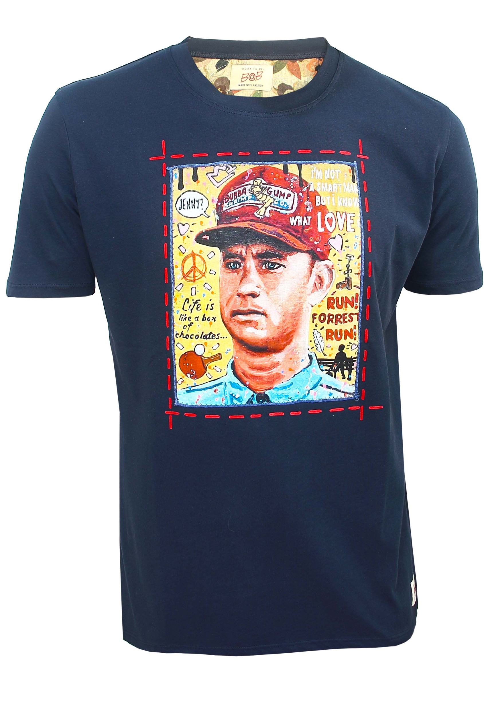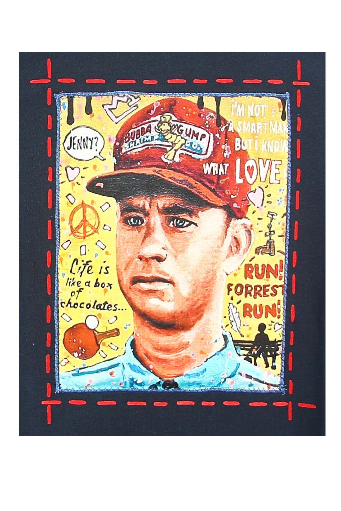 Эта футболка от итальянского бренда BOB — не просто базовая вещь, а настоящее произведение современного поп-арта. Дизайнеры марки переосмыслили образ легендарного киногероя Форреста Гампа, создав яркий и детализированный коллаж в узнаваемой стилистике бренда. Изделие выполнено из мягкого хлопкового джерси глубокого темно-синего оттенка. В центре внимания — авторский принт, дополненный элементами ручной работы. Изображение Тома Хэнкса в роли Форреста Гампа окружено культовыми цитатами и символами из фильма. Принт обрамлен контрастной красной строчкой, ручной стежок — знаковый элемент коллекции BOB. Детали: Футболка с изображением Форреста Гампа Bob. Прямой крой. Принт с изображением актера Тома Хэнкса. Короткий рукав. Круглый вырез горловины. Состав материала: 100% хлопок. Сделано в Италии.